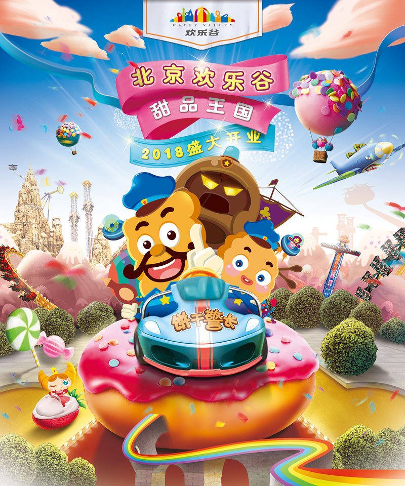 2018年4月29日,北京歡樂谷四期•甜品王國將甜蜜開放0.10億巨資匠心打造,10萬平米量身定制,12大項目酷爽嗨萌,100場演藝文化沉浸,1大國產(chǎn)原創(chuàng)動漫IP--“餅干警長”駐地護(hù)衛(wèi),與甜品跨界融合的“游樂動漫IP”情景帶入主題區(qū) - 甜品王國,帶你暢享全新的沉浸式甜蜜娛樂體驗。引領(lǐng)閨蜜約玩好去處,文藝小咖聚集地,親子趣游新地標(biāo)!