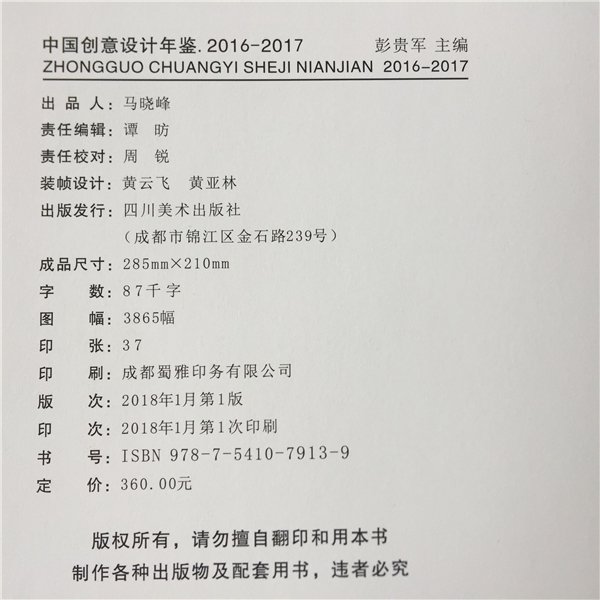 由北京中外視覺藝術(shù)院、中外設(shè)計(jì)研究院、中國創(chuàng)意同盟網(wǎng)(ideatom.com)聯(lián)合主辦的大型年度出版物——《中國創(chuàng)意設(shè)計(jì)年鑒·2016-2017》已于2018年1月由四川美術(shù)出版社正式出版發(fā)行,ISBN書號:978-7-5410-7913-9,中國版本圖書館CIP數(shù)據(jù)核字(2018)第021335號。 本屆《年鑒》經(jīng)過長達(dá)一年多的編審工作,共收錄中國大陸及港澳臺地區(qū)的3000余位設(shè)計(jì)師的精品力作。本屆《年鑒》全書厚達(dá)6厘米,重約4公斤,“厚重”之中既承載著創(chuàng)意的理念形態(tài)與設(shè)計(jì)的物質(zhì)形式,也見證著《中國創(chuàng)意設(shè)計(jì)年鑒》編委會多年來的持續(xù)堅(jiān)守。
